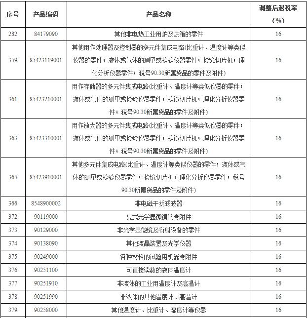 值此中美貿(mào)易戰(zhàn)如火如荼進(jìn)行的背景之下,財(cái)政部于2018年9月5日,公布了《關(guān)于提高機(jī)電 文化等產(chǎn)品出口退稅率的通知》。通知公示了提高出口退稅率的產(chǎn)品清單,397項(xiàng)機(jī)電、文化類(lèi)產(chǎn)品退稅率得到提升,最高可達(dá)16%。其中24項(xiàng)產(chǎn)品與儀器儀表相關(guān),5項(xiàng)屬于理化分析儀器零件。