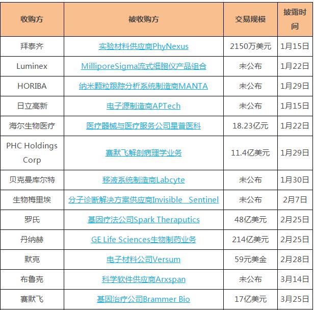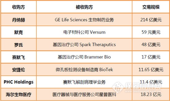 2019上半年交易額在1億美元以上的儀器企業(yè)并購案