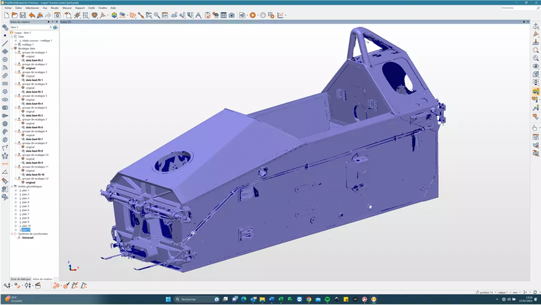 “如果表面上出現(xiàn)孔洞,借助多邊形掃描功能,您只需重新掃描孔洞即可。同時(shí),借助PolyWorks中的選擇工具,我們可以刪除支撐、“清理”像素等。我們以前使用的軟件解決方案的服務(wù)提供商總是向我們收取“清理”部件的費(fèi)用,然后再收取“清理”掃描的費(fèi)用。Laurent先生說“過去需要半天甚至一整天來完成掃描的零件,現(xiàn)在只需半小時(shí)或最多一小時(shí)就能完成掃描”,他特別強(qiáng)調(diào)說,即使是鋁制底盤,或者亮黑色、鍍鉻的零件也能輕松完成掃描。