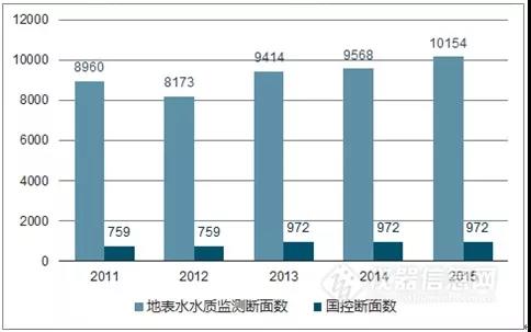 2011-2015地表水水質(zhì)監(jiān)測斷面數(shù)變動