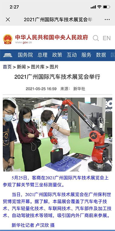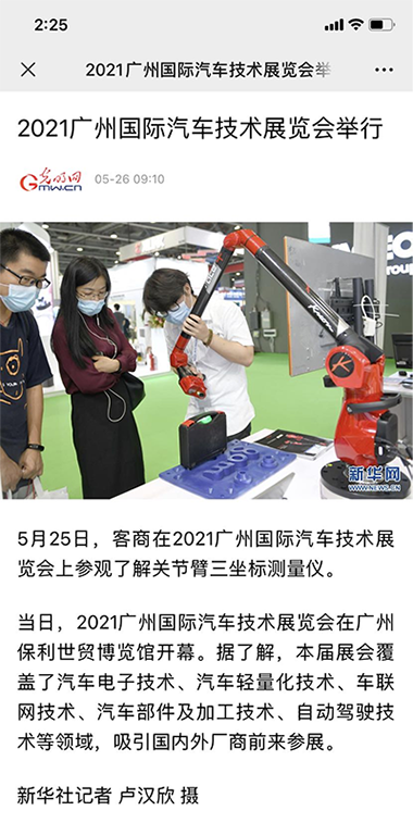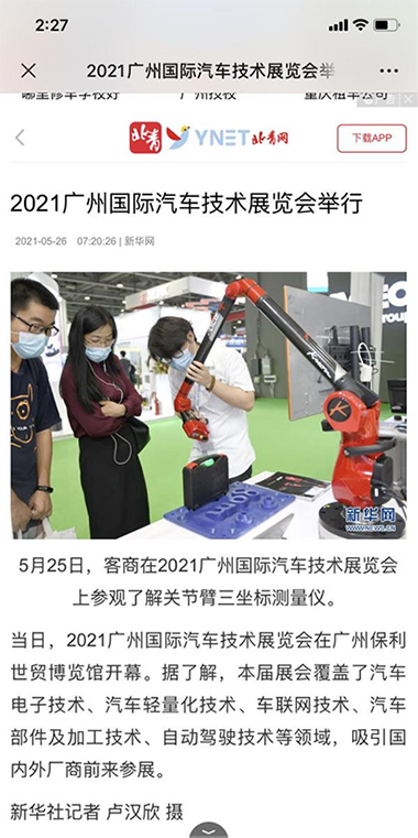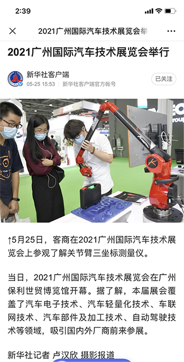 鴻華科技有限公司展位及展機(jī)-法國(guó)科瑞朗Kreon關(guān)節(jié)臂三坐標(biāo)測(cè)量?jī)x備受青睞,吸引不少客商駐足垂詢,并得到新華網(wǎng)、中華人民共和國(guó)中央人民政府網(wǎng)、搜狐網(wǎng)、北青網(wǎng)等知名媒體關(guān)注及入鏡報(bào)道。