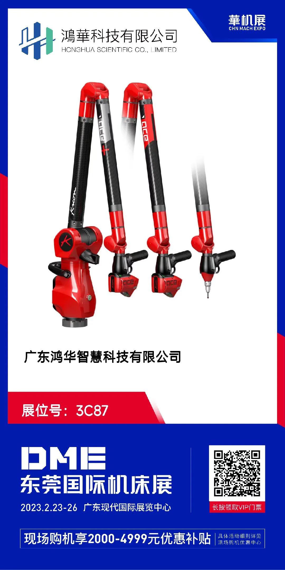 2023DME東莞國(guó)際機(jī)床展將于2月23日-26日在東莞市廣東現(xiàn)代國(guó)際展覽中心(東莞厚街)盛大開展。鴻華科技有限公司受邀參展(展位號(hào)3C87),正在火熱籌備展會(huì)中。