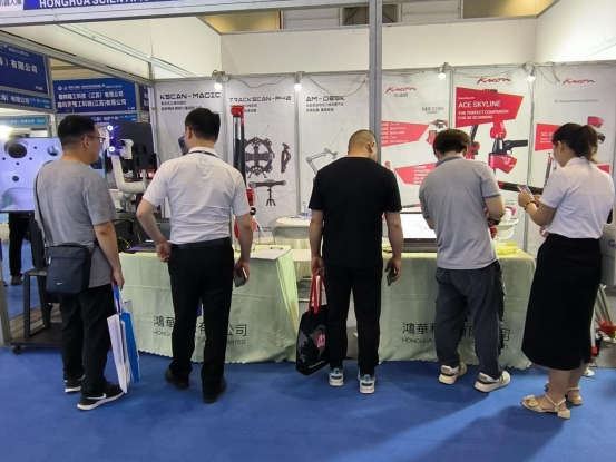 本次展會,鴻華科技有限公司全方位展示了法國科瑞朗KREON關(guān)節(jié)臂三坐標(biāo)測量機、思看科技全能型自動化三維測量平臺、彩色三維掃描儀、霍梅爾HOMMEL便攜式粗糙度儀等高科技產(chǎn)品。為便于現(xiàn)場客戶及合作伙伴近距離、多角度參觀、了解我們的展出設(shè)備,我們在展示創(chuàng)意方面不斷創(chuàng)新,現(xiàn)場展示IREAL彩色三維掃描儀掃描專業(yè)真人模特,帶給觀展客戶不一樣的觀展體驗和收獲。