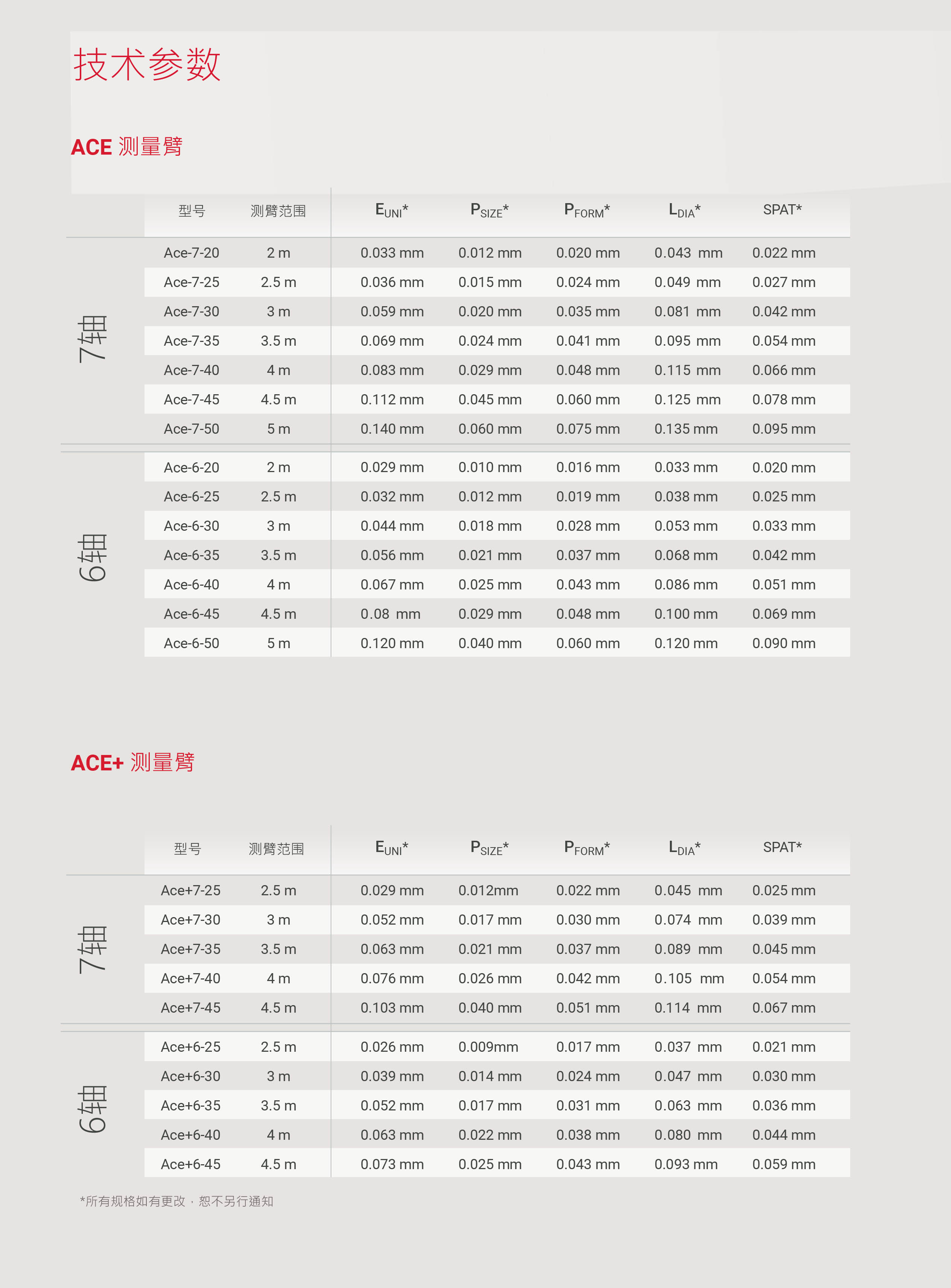 ACE系列包括兩種型號:ACE和ACE +測量臂。ACE +支臂采用最新的編碼器技術(shù),還擁有先進(jìn)的校準(zhǔn)方法,可確保出色的性能。
